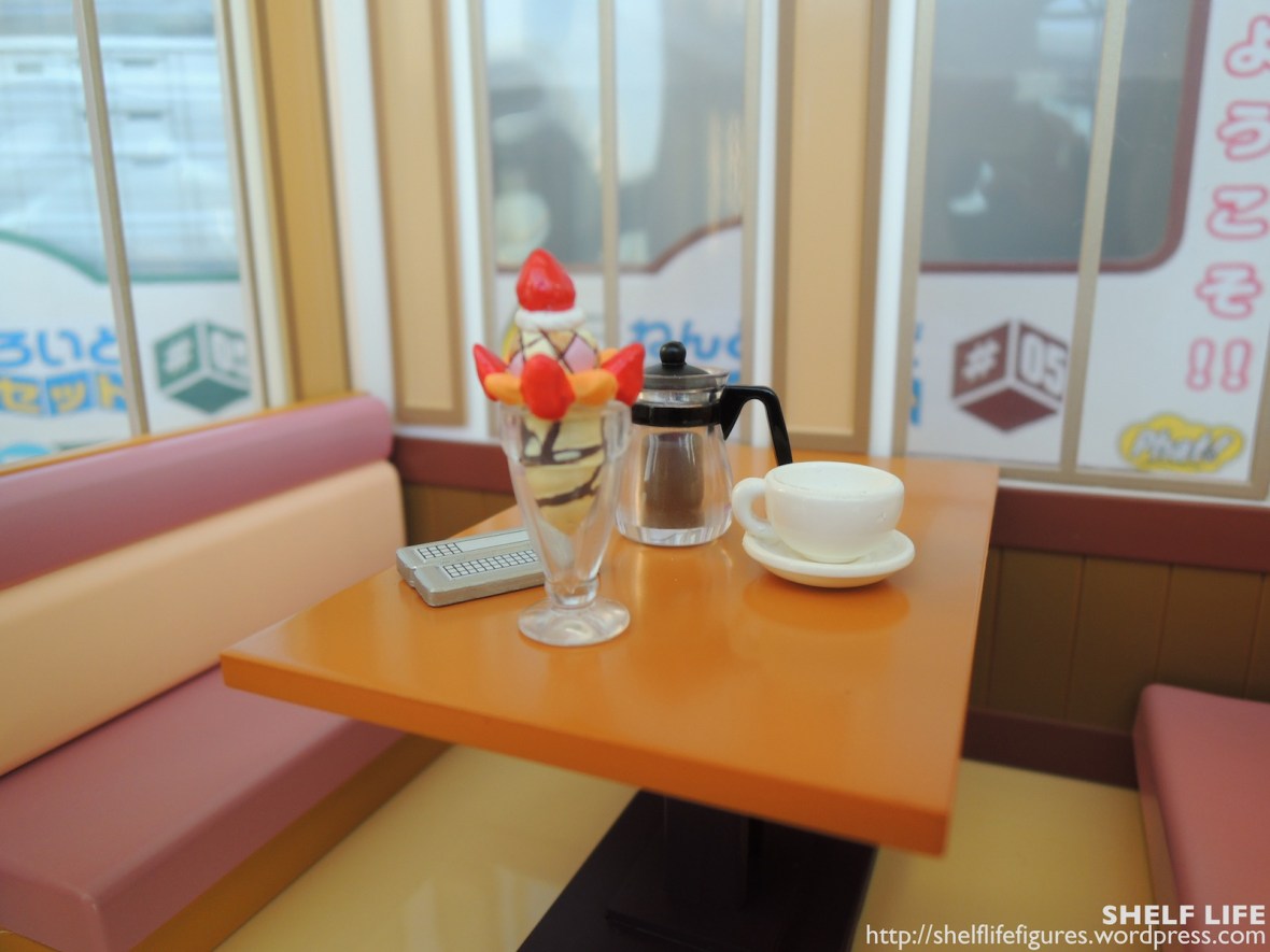 And that’s set A of the Wagnaria playset. Nothing too extraordinary here, but I do really like the parfait and the coffee. They are detailed, but not as detailed as other miniatures like ones produced by RE-MENT or Megahouse. I also wish there were more! In any case, I can’t wait to seat some of my Nendoroids in these chairs~ Let’s move on to set B now…