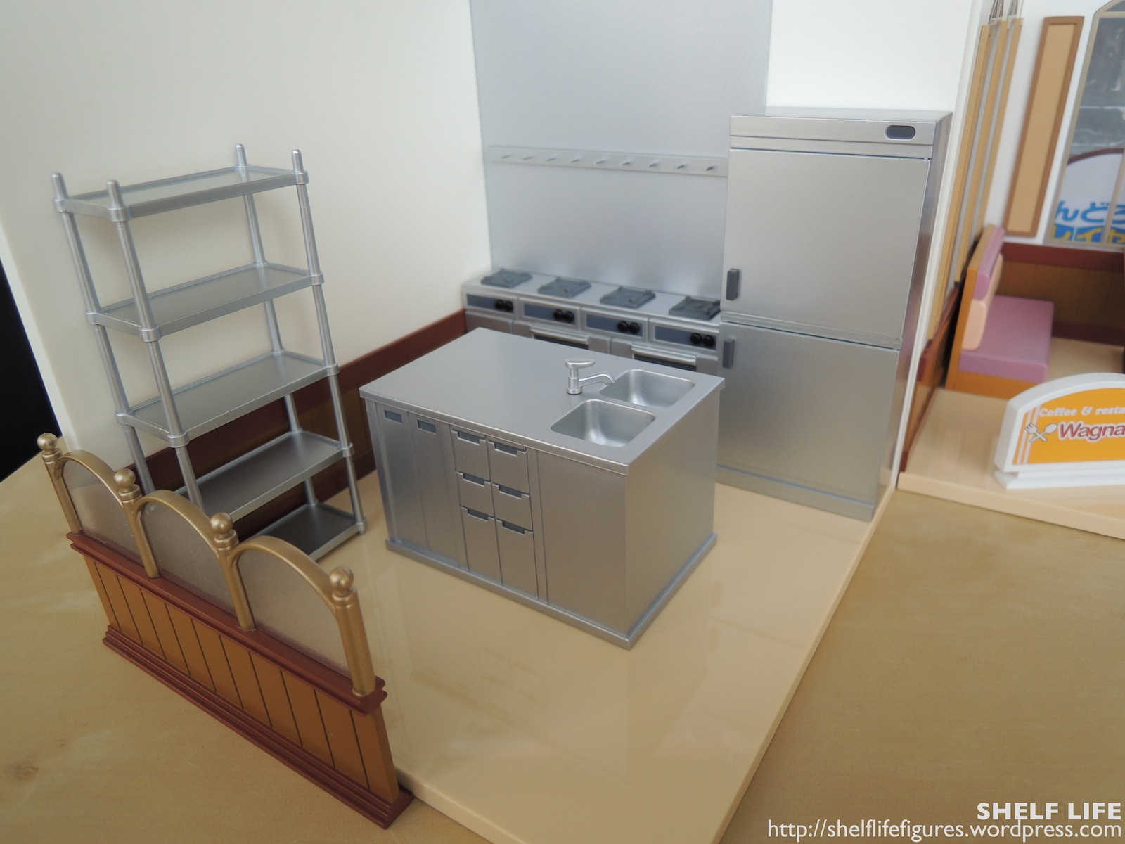 As you can see here, the name on the sign wasn’t done very well, so part of the r is missing! (>△<) Oh well, luckily I bought a second set of this set to create a bigger restaurant, so I have a extra sign to use.