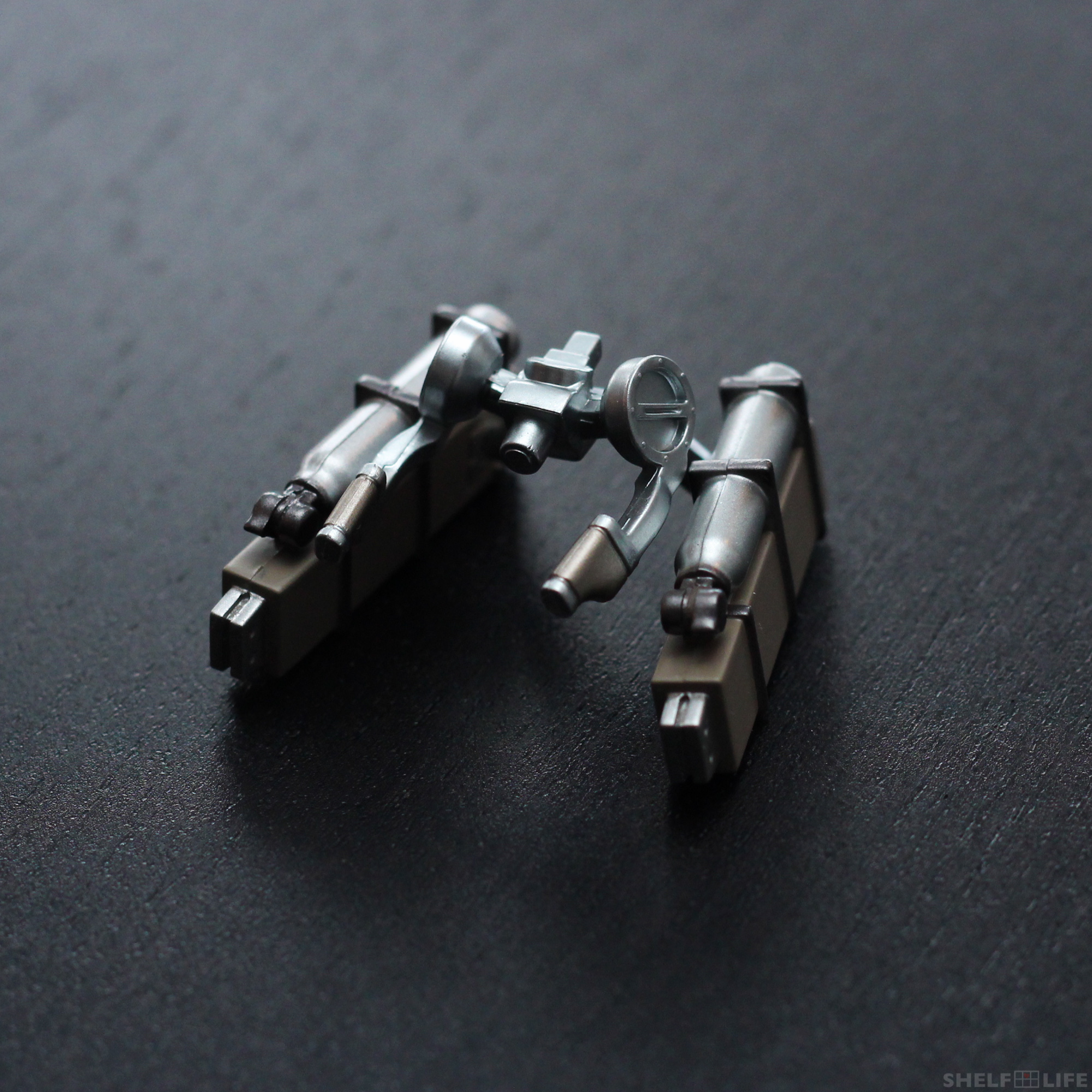 The scabbards and gas canisters are attached to the main device by a ball joint so they won’t restrict posing as much. Extra blades cannot be removed from the scabbards, and there are no parts included to simulate the steel wires that come out of the device.